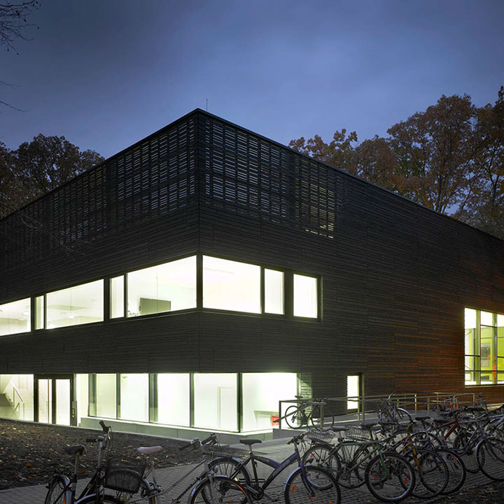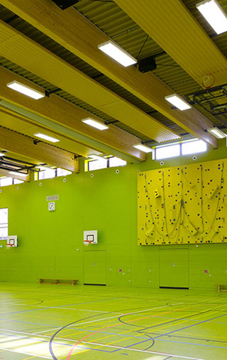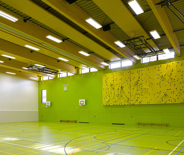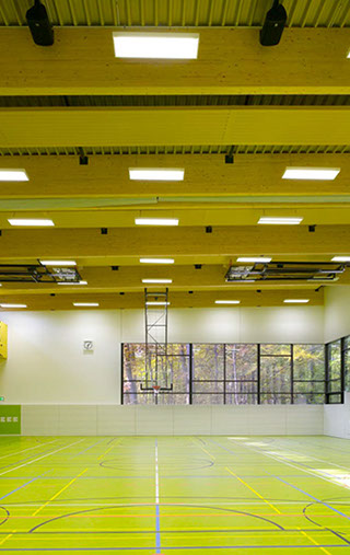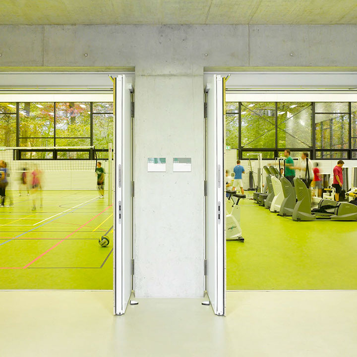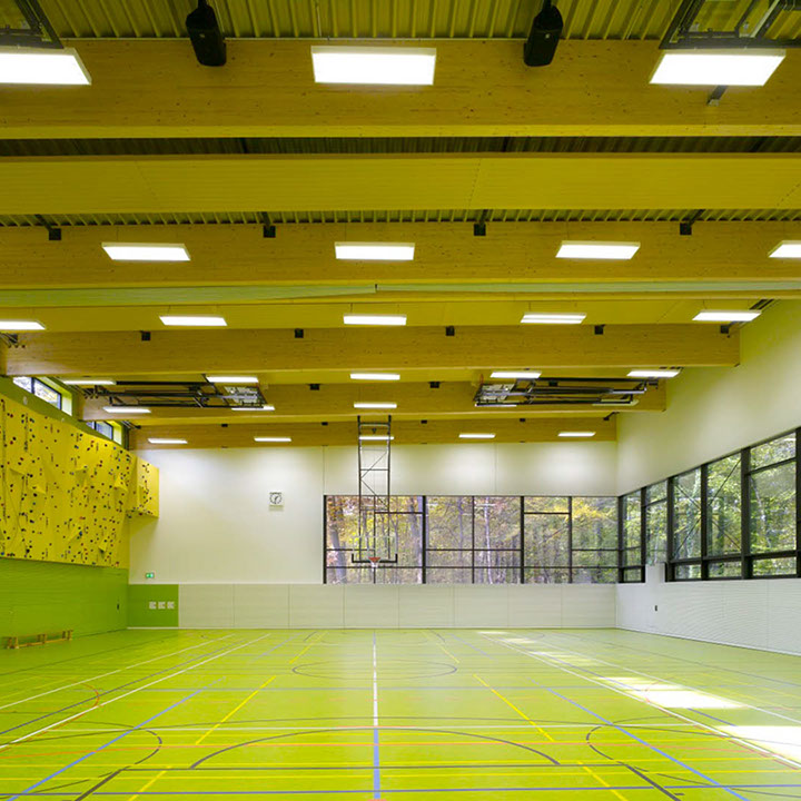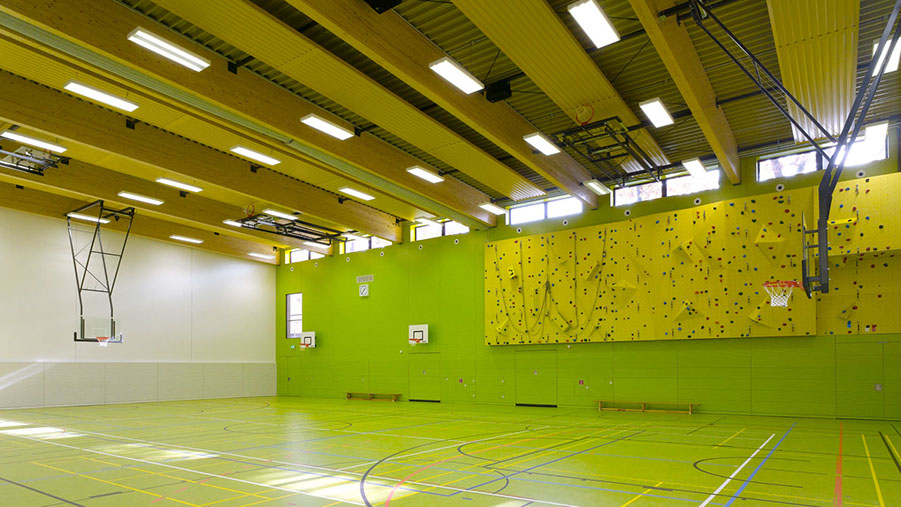 Die Dreifeldsporthalle ist Teil der neuen Sportstätte des Instituts für Sportwissenschaften auf dem Campus Süd des KIT. Auf zwei Geschossen ist Platz für den Trainingsbetrieb für bis zu 120 Studenten geboten.