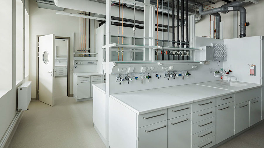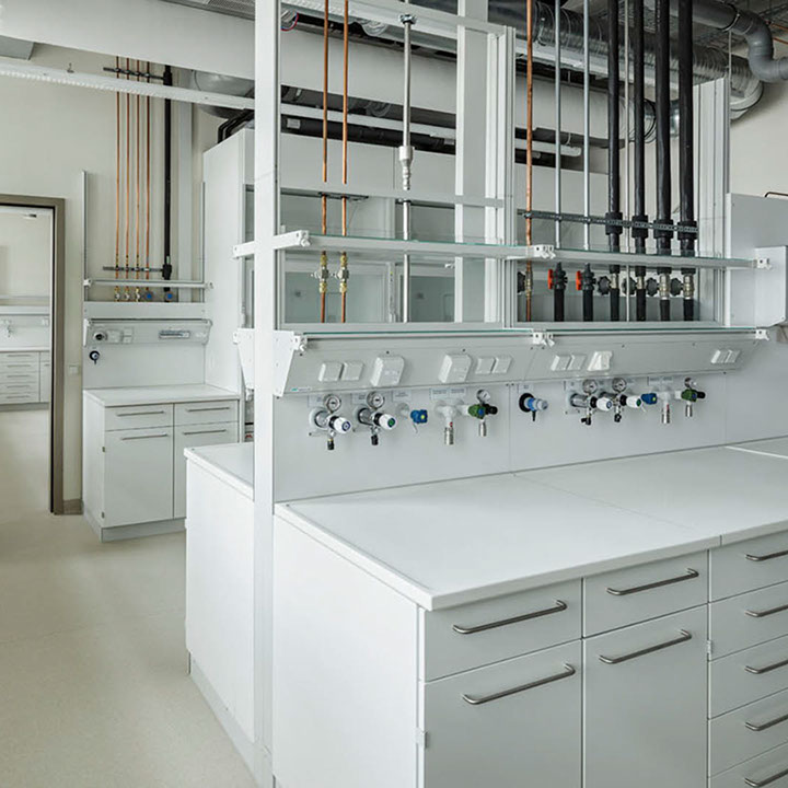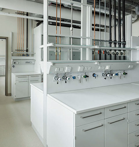 Planung und Bauleitung der Gewerke: Heizung, Lüftung, Kälte, Reinraum, Sanitär und Technische Gase.