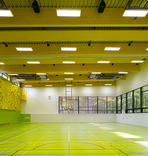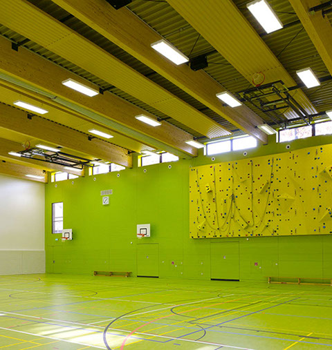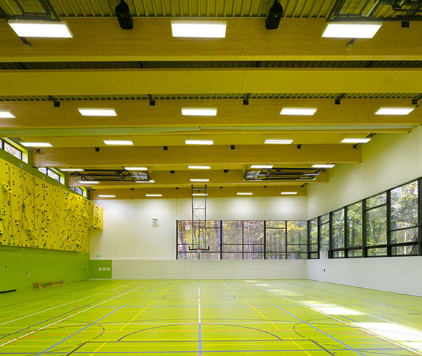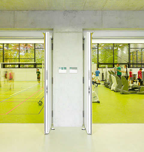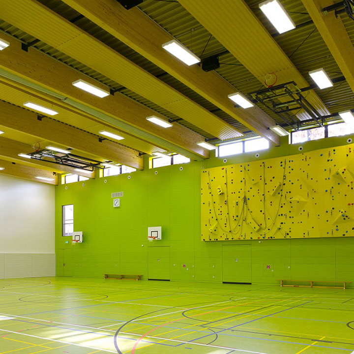 Die Dreifeldsporthalle ist Teil der neuen Sportstätte des Instituts für Sportwissenschaften auf dem Campus Süd des KIT. Auf zwei Geschossen ist Platz für den Trainingsbetrieb für bis zu 120 Studenten geboten.